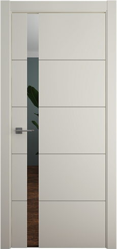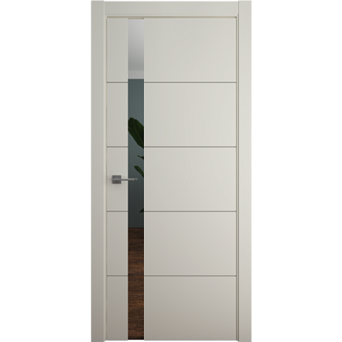 Межкомнатная дверь от фабрики Albero созданы для того, что бы порадовать Вас роскошной красотой модели: Модель относится к щитовой конструкции двери, которая изготовлена из сэндвич-бруса, внутренних закладных в виде - сотового заполнителя и элементов усиления. Сверху каркас обшит высокопрочным МДФ, плотность которого составляет 850 кгм3. В остекленной модели используется не прозрачное зеркало с серым оттенком. Покрытие Эмаль – это уникальное, экологически чистое лакокрасочное покрытие на водной основе, которое наносится на подготовленную предварительно отшлифованную поверхность грунта, эмаль наносится в несколько слоев, и проходит между окрашиваниями стадии отверждения. Такая технология, позволяет финишному покрытию обладать высокой прочность к механическим повреждениям. За счет отсутствия в составе ацетона и других растворителей не выцветает, не выгорает, сохраняя при этом свои превосходные эстетические характеристики. Такое покрытие сохранит первозданный вид на долгие годы. Дверь не имеет сторонности и является универсальной